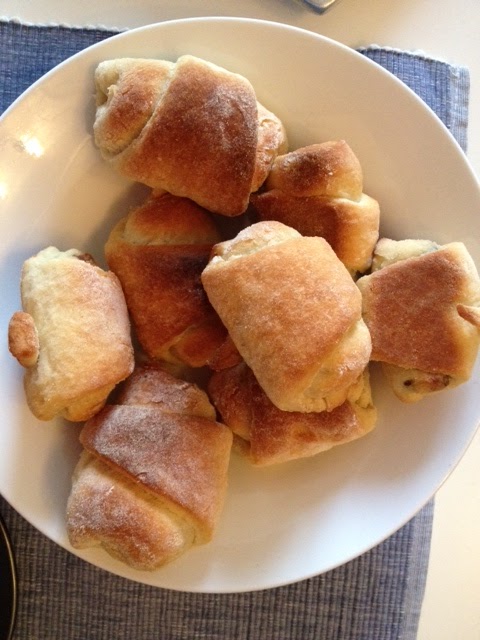 Lørdag aften spillede AG jo Champions League mod Barcelona, og den håndboldkamp ville vi ikke gå glip af. Min mand spurgte om jeg ikke havde noget lækkert til kampen, og om eftermiddagen bagte jeg da lige en portion nougathorn (er kommet til at hamstre lidt for meget nougat, og det udløber snart 🙁 )