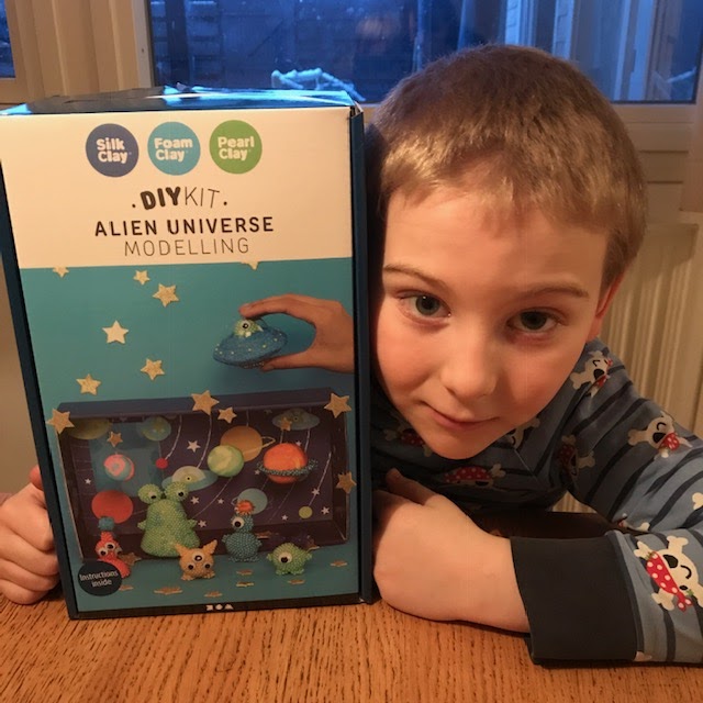 Vi har fået dette sæt med universet og alien fra CC Hobby (reklamelink), og det vakte stor glæde hos drengene. Vi brugte en hverdagseftermiddag på at lege med det sammen med et lækkert frugtfad.