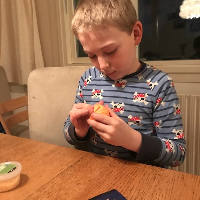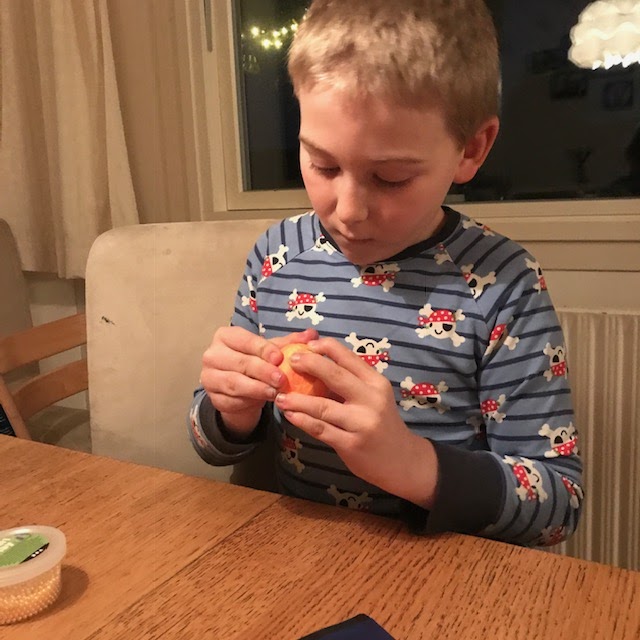 Begge mine drenge elsker at være kreative, og vi laver en masse forskelligt kreativt herhjemme. I SFO’en er der også et kreativt værksted, og så lærer de også nye ting til juletræsfesten på min fars arbejde hvert år i november. Vi har tidligere (netop på min fars arbejde) prøvet foam clay (reklamelink), og det synes børnene var sjovt. Det er en slags blød modellervoks med små kugler, når det tørrer bliver det helt hårdt.